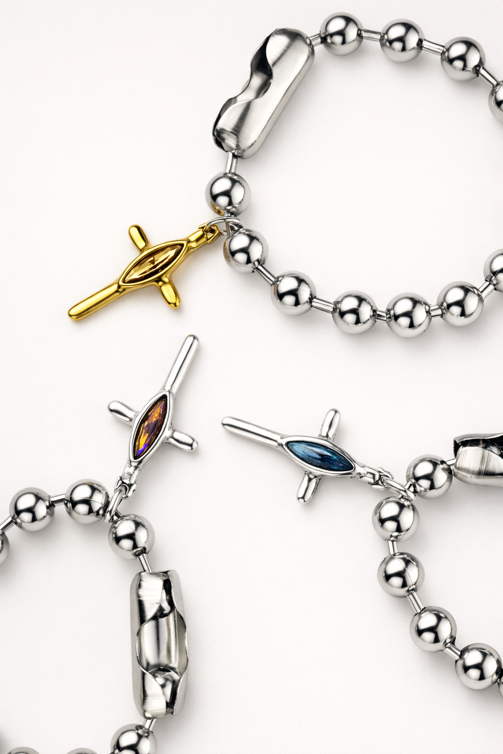 Материалы: ювелирный сплав Zamak (сплав цинка с алюминием, магнием и медью), серебряное покрытие 20-25 мкр и золотое покрытие 3 мкр, нержавеющая сталь, кристалл.