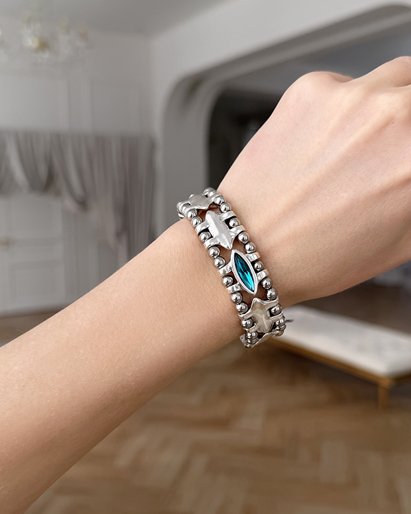 Материалы: ювелирный сплав Zamak (сплав цинка с алюминием, магнием и медью), стрейч, серебряное покрытие 20-25 мкр и кристаллы.