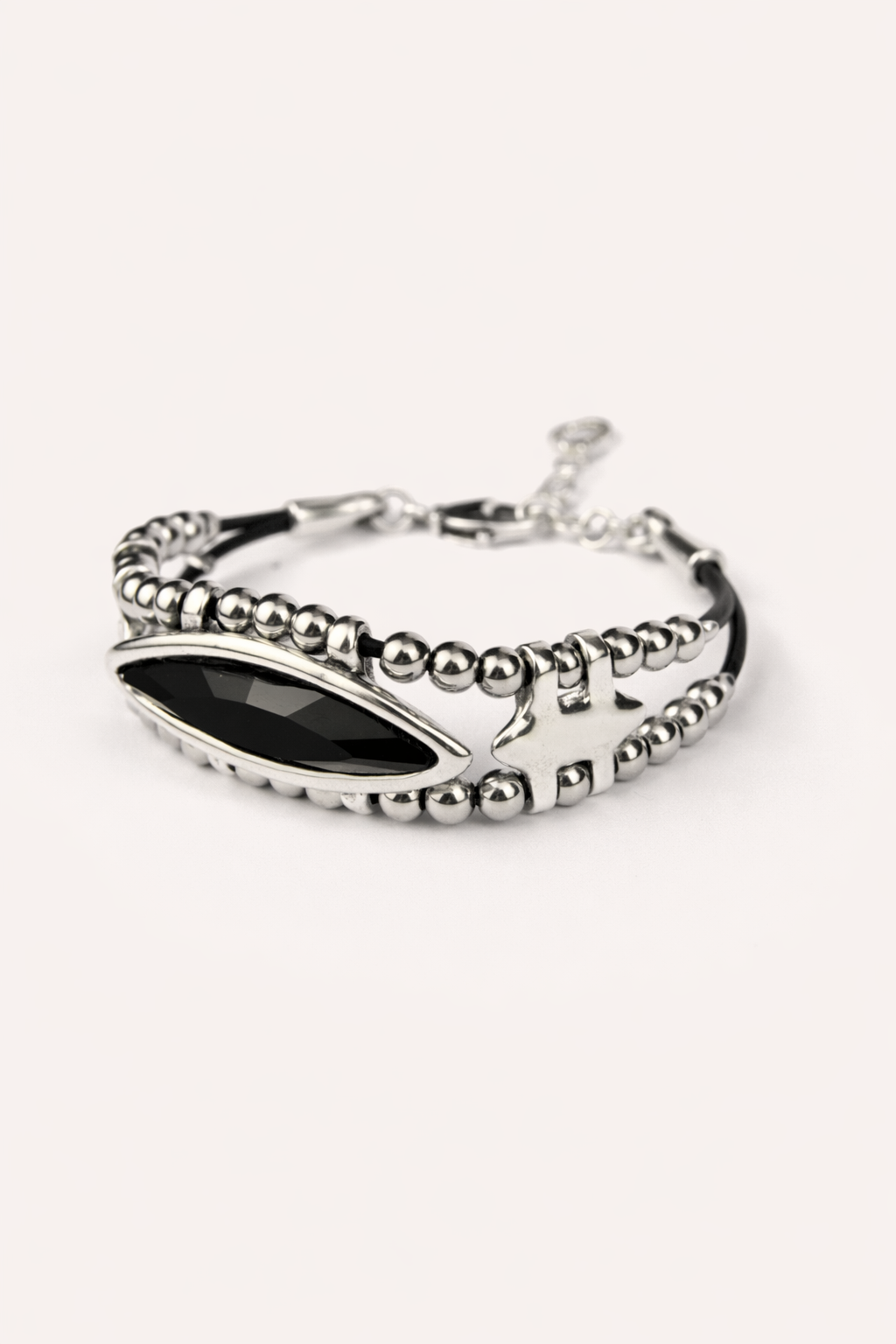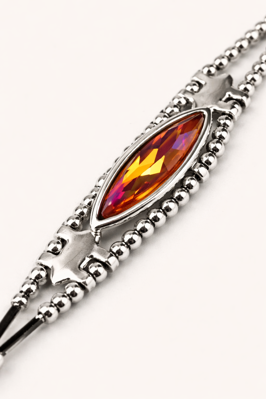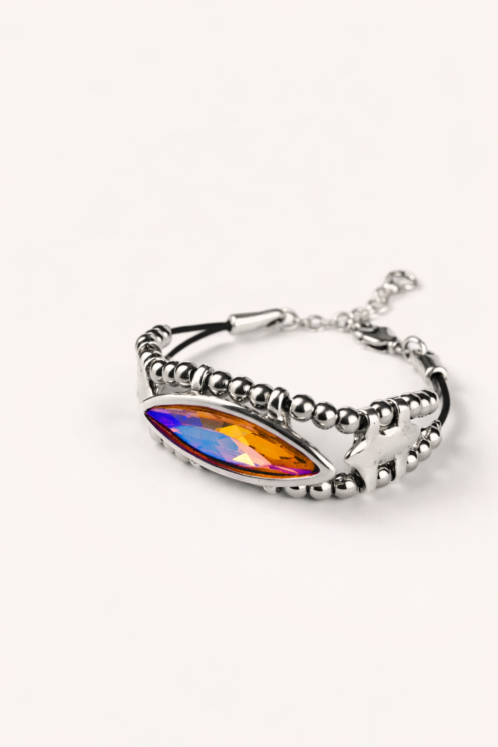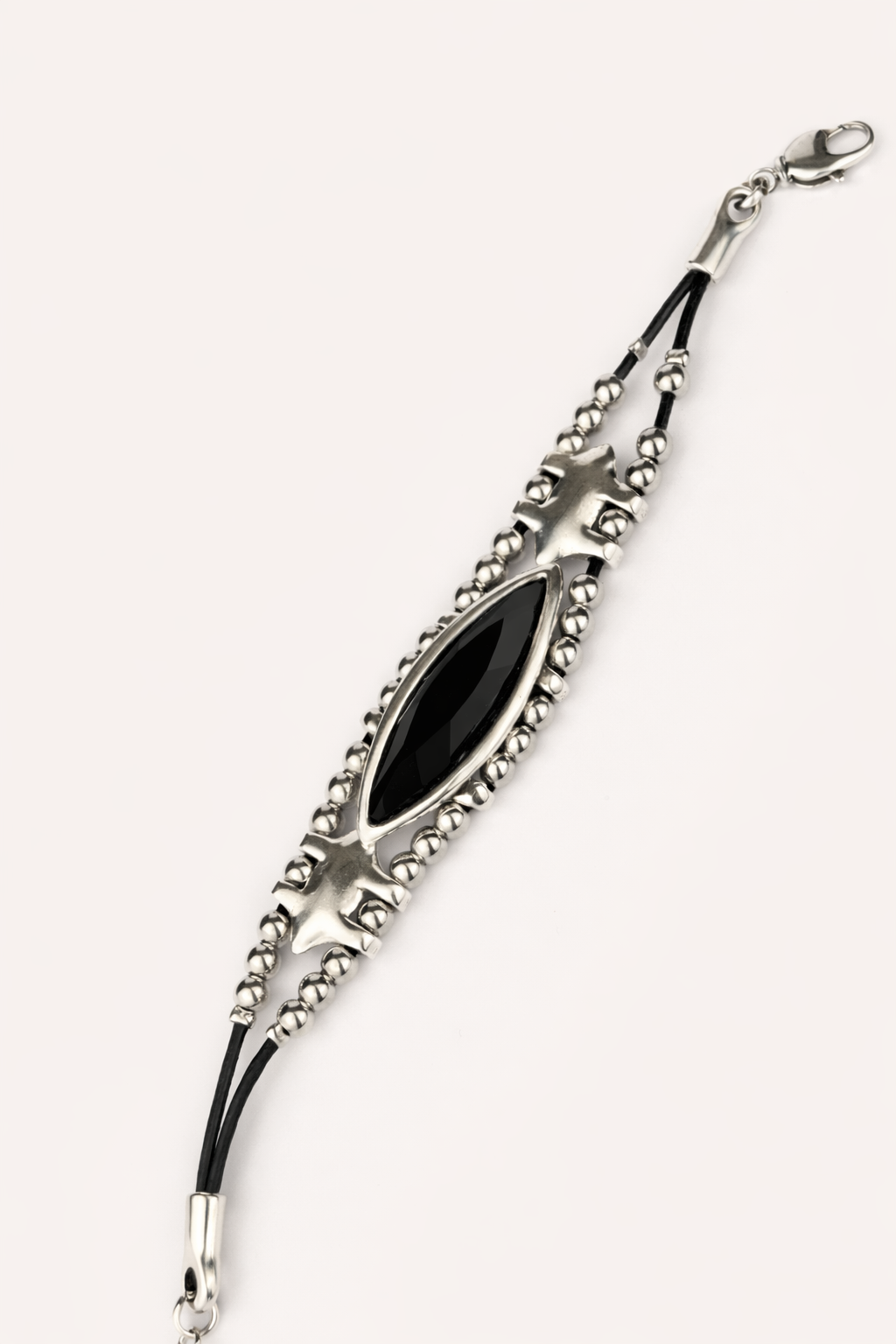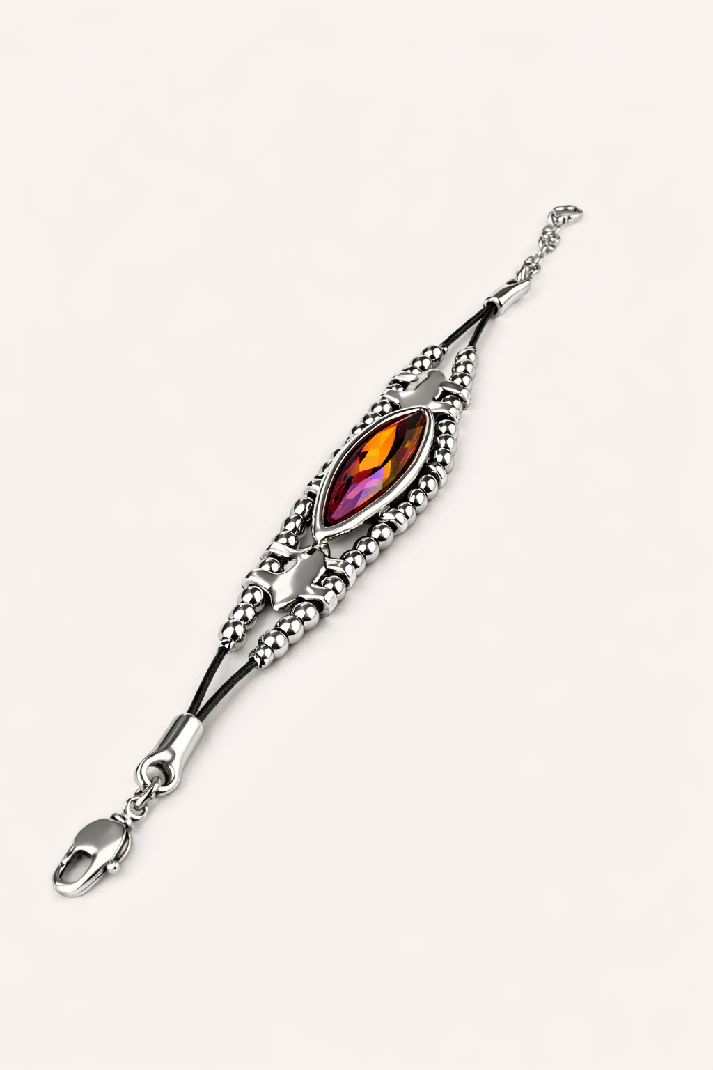 Материалы: ювелирный сплав Zamak (сплав цинка с алюминием, магнием и медью), серебряное покрытие 20-25 мкр и кристаллы, натуральная кожа.