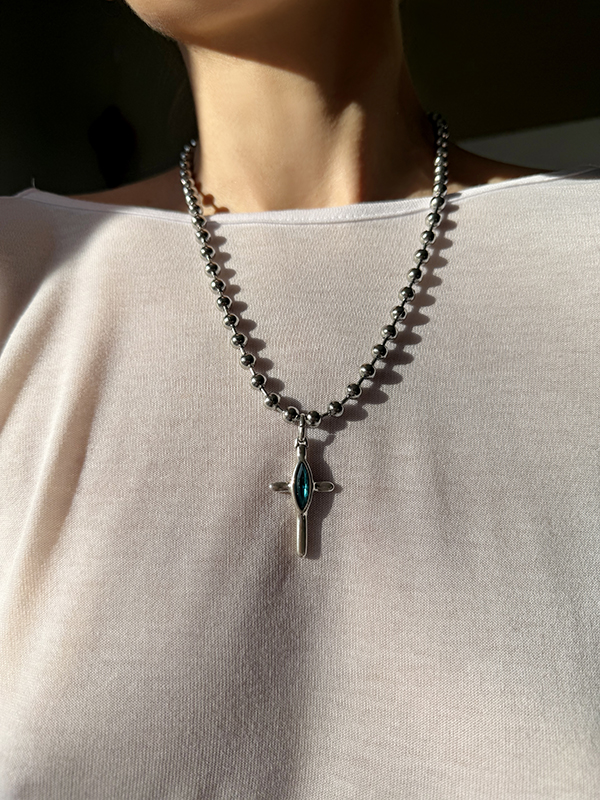 Колье Ciclón. Ручная работа. Сделано в Мадриде. Материалы: ювелирный сплав Zamak (сплав цинка с алюминием, магнием и медью), серебряное покрытие 20-25 мкр, нержавеющая сталь, кристаллы. Колье короткое.