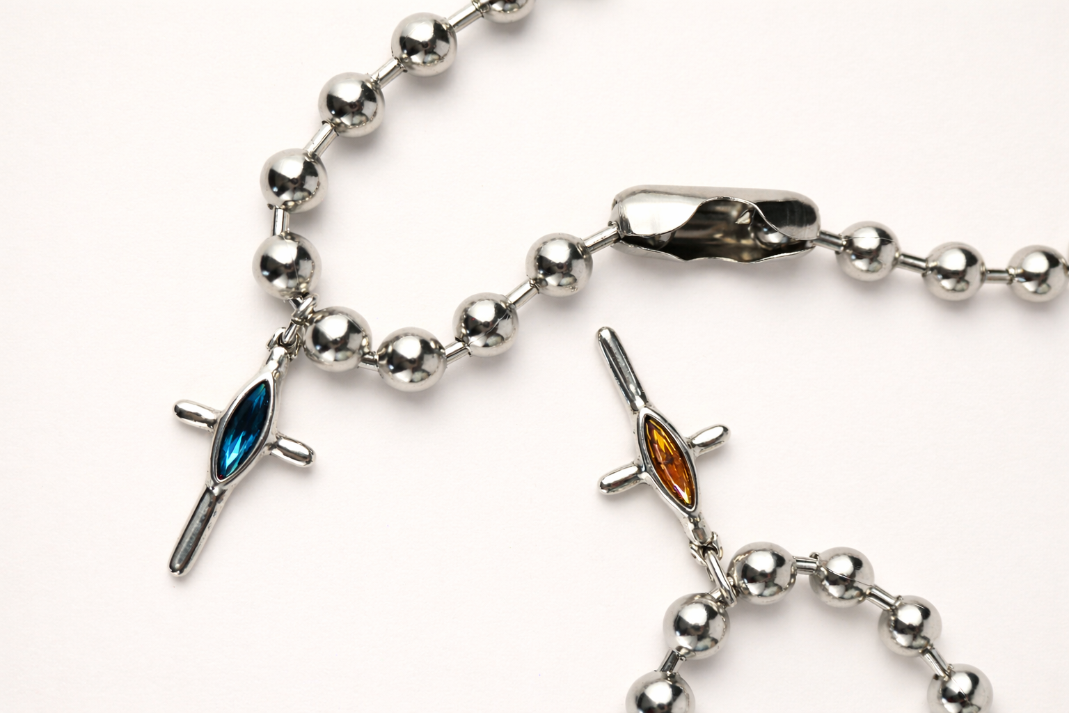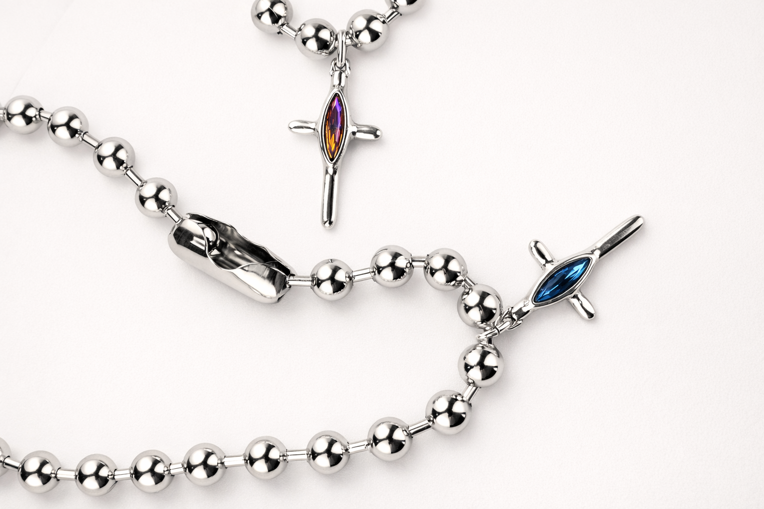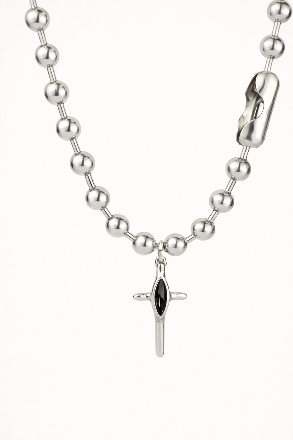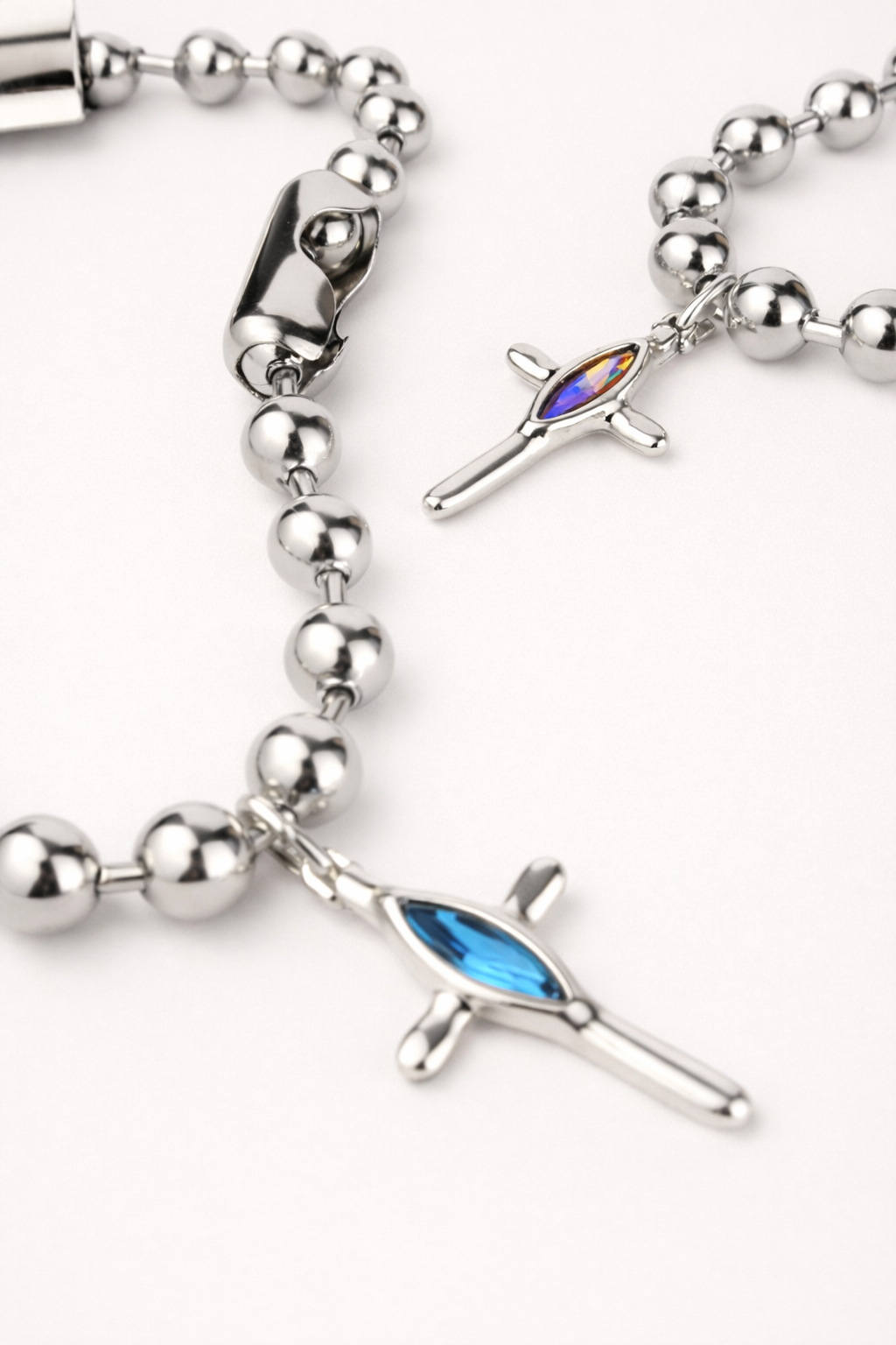 Колье Ciclón. Ручная работа. Сделано в Мадриде. Материалы: ювелирный сплав Zamak (сплав цинка с алюминием, магнием и медью), серебряное покрытие 20-25 мкр, нержавеющая сталь, кристалл. Короткое колье.