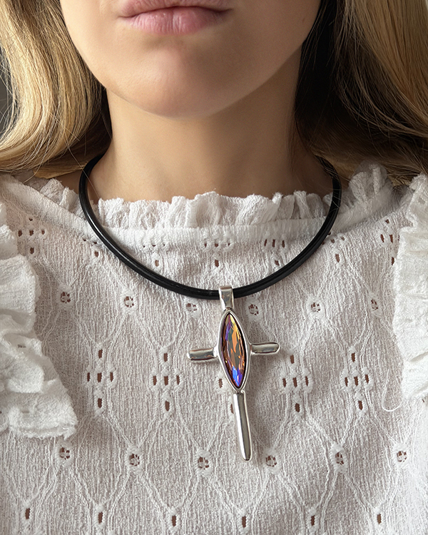 Материалы: ювелирный сплав Zamak (сплав цинка с алюминием, магнием и медью), серебряное покрытие 20-25 мкр, нержавеющая сталь, натуральная кожа, кристалл.